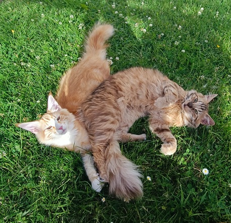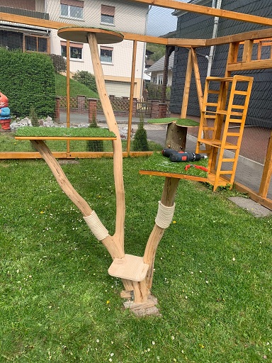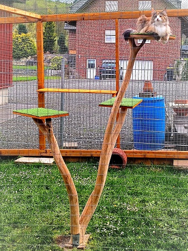 Seit Anfang des Jahres 2022 können unsere Miezen nun auch endlich raus und wie man sehen kann genießen sie es sehr! Alles in Eigenleistung und selbst gebaut von meinem lieben Mann!!!